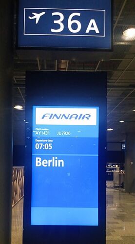 ヘルシンキ空港シェンゲンエリアのフィンエアーラウンジで一息ついた後は、いよいよこの旅の最後の便、ベルリン行きの飛行機に搭乗します。 ヘルシンキに到着してから約2時間半の乗り継ぎ時間でした。 ゲートは36A。 お隣のゲート36は、7:50発のミュンヘン…